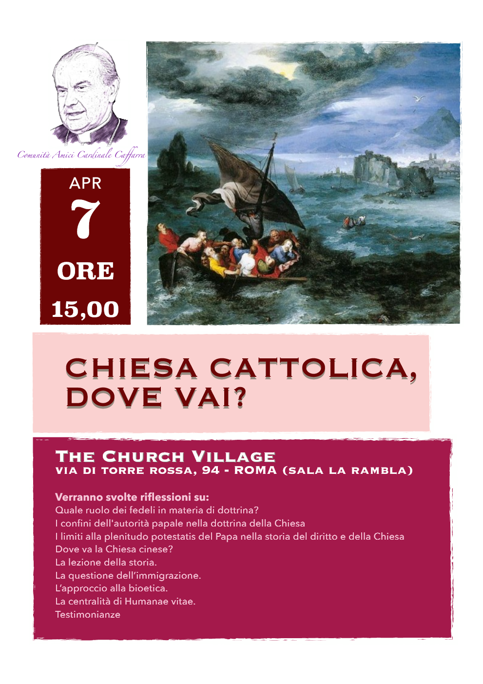 come forse sai il 7 aprile si terrà un importantissimo convegno a Roma dal titolo "Chiesa cattolica dove vai?".