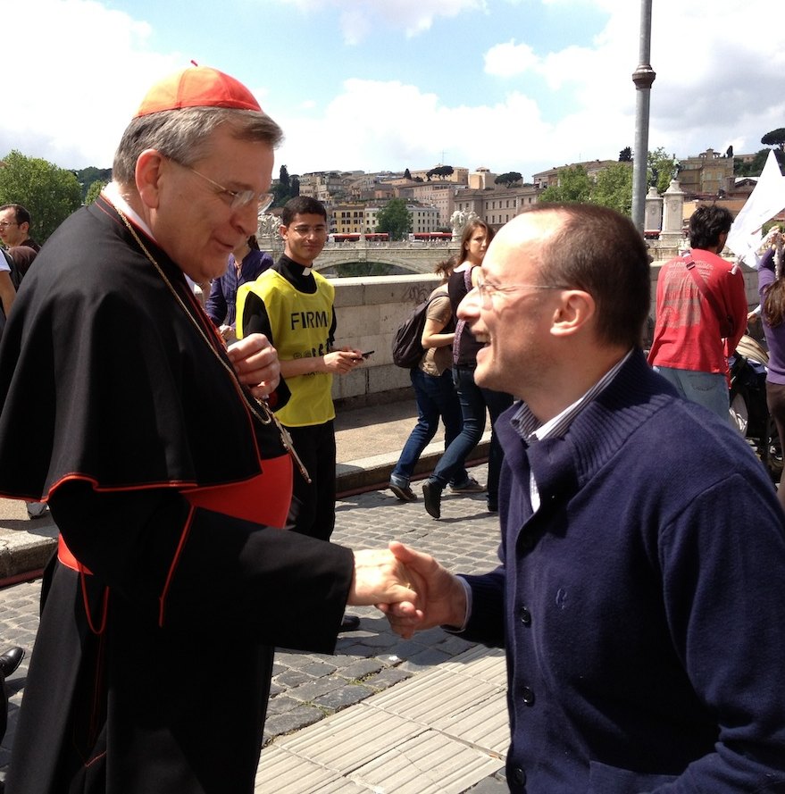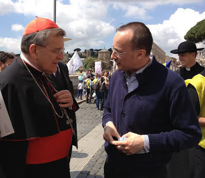 Domenica 12 maggio sono stato a Roma alla terza Marcia nazionale per la Vita. Qui ho marciato con altri 40.000 e ho presentato il terzo libro della Marcia per la Vita pubblicato da Fede & Cultura. Verso mezzogiorno ho incontrato il Card. Raymond Leo Burke con quale abbiamo fatto progetti editoriali. Per fortuna esistono ancora uomini di Chiesa santi!